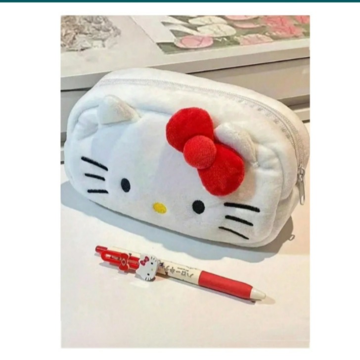 Estuche o cosmetiquera hello kitty blanco felpa (no incluye bolígrafos)
