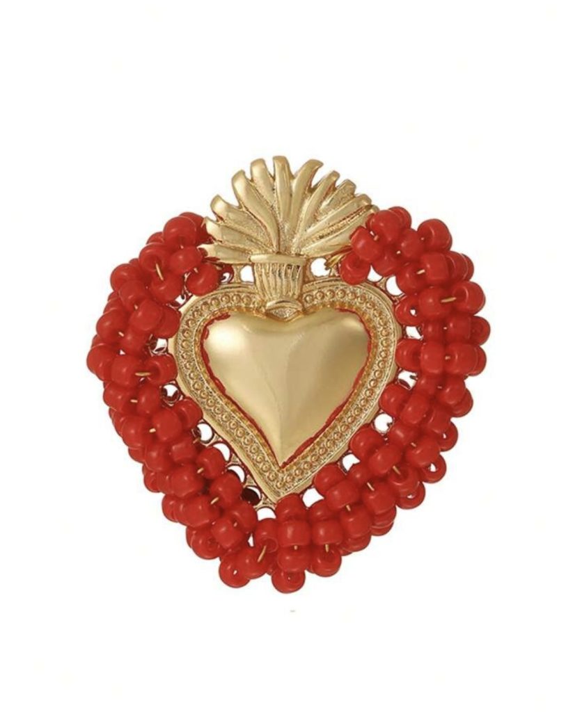 Anillo miyuki cobre sagrado corazón rojo -ajustable-